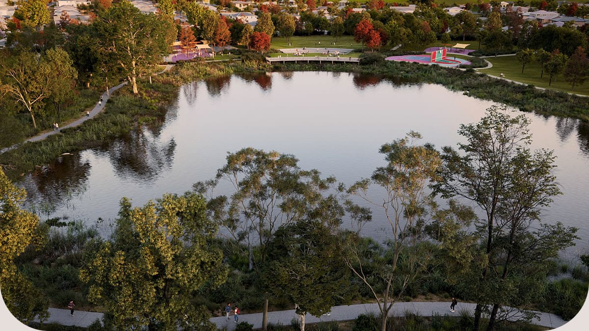 The new lake and wetland area will enhance local biodiversity, featuring native aquatic plants to improve water quality and create habitats for various wildlife. Additional landscaping will include different plant species, and community amenities such as footpaths, playgrounds, BBQ areas, and outdoor gym facilities will be integrated into the estate.