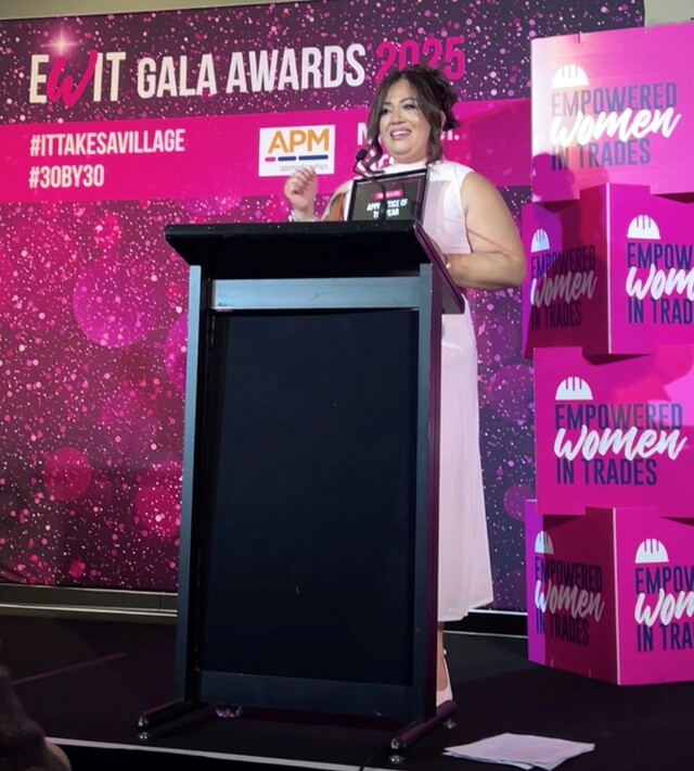 In front of an audience of 400 industry leaders, advocates, and fellow apprentices, Gamero delivered an inspiring message about breaking barriers in a traditionally male-dominated sector. “It’s incredible to see women breaking barriers and empowering each other,” Gamero stated. “EWIT is proud to support and uplift women, especially single mums. You’re capable and strong — believe in yourself and keep shining.”