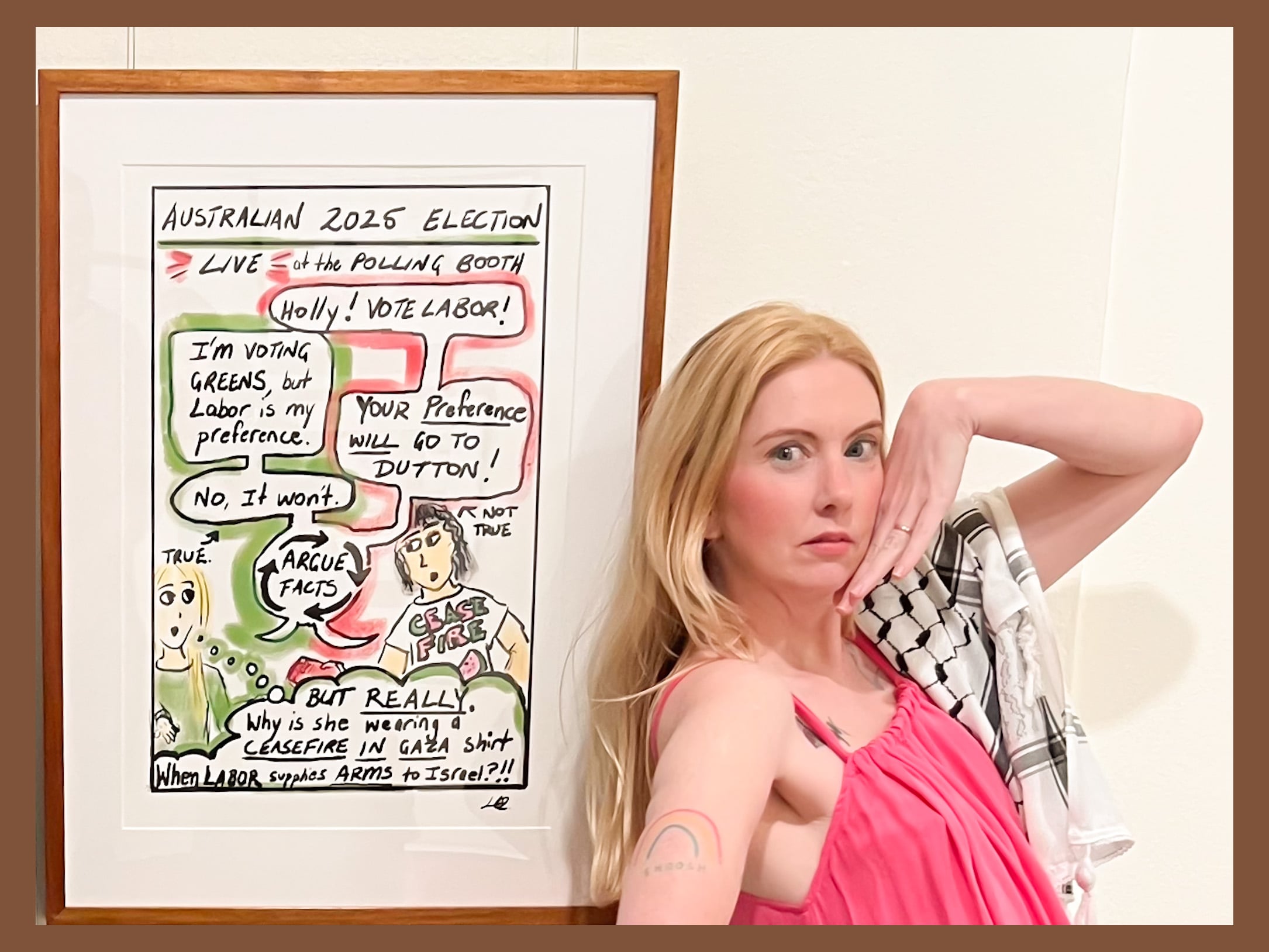In a passionate reflection, Holly highlighted the disconnect among voters regarding critical issues, saying, “Labor voters who strongly agree with a ceasefire in Gaza are complacent about Australia supplying weapons parts being used in the conflict. Those supporters seemed unable to make the connection.”